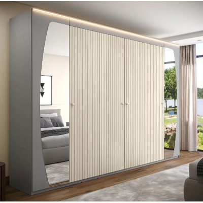 کمد لباس سخت با اثر پاره شده ، آینه و LED 6 درب 6 کشو