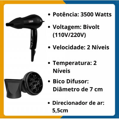 مینی سشوار برای سفر Bivolt 3500W + دیفیوزر