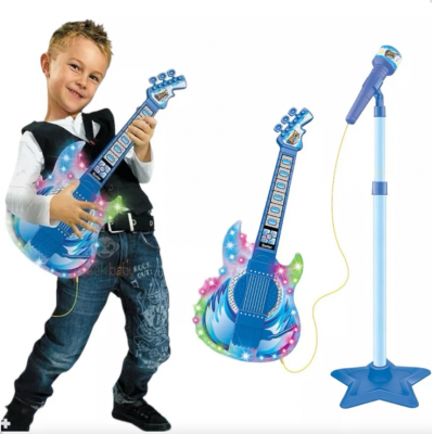 میکروفون با صدای گیتار کودکان و نمایش راک پسران سبک