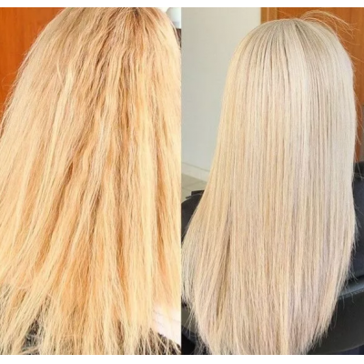 - از رنگ محافظت می کند ، محو شدن رنگ های تیره را کاهش می دهد و زردی رنگ های بلوند را کاهش می دهد (مو با تن تا 8).