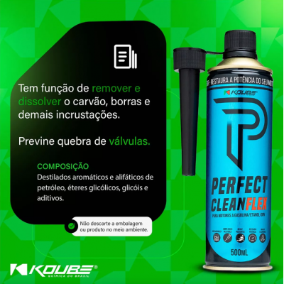 Koube Flex Perfect Flex ، محصولی است که برای تمیز کردن سیستم برق ، پذیرش و موتور محفظه احتراق با سیستم تزریق معمولی یا کربوها طراحی شده است. این عملکرد دارای عملکرد حذف و حل زغال سنگ ، ریگ ها و سایر اجزاء ، تبدیل خاک به ریزگردها گاز است که به طور قابل توجهی مصرف بیش از حد سوخت را کاهش می دهد. مناسب برای تمیز کردن انژکتورها ، دفع کربن سازی موتورها و جلوگیری از گسل های ناشی از سوخت دستکاری شده. از شکستگی دریچه ، خطرات پیراهن سیلندر و انسداد کاتالیزور جلوگیری می کند.